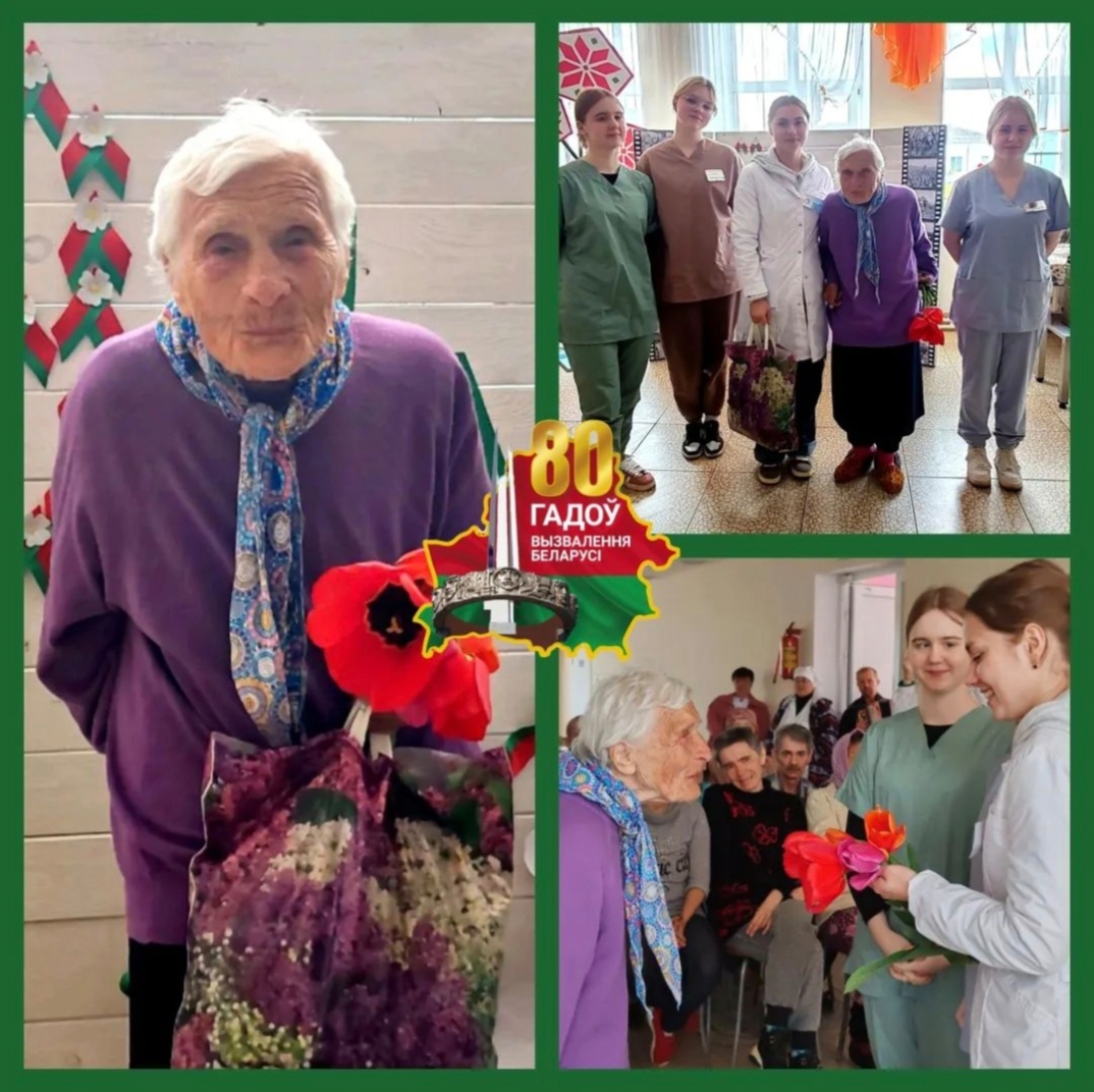 В праздник Победы волонтеры Учреждение образования "Полоцкий государственный медицинский колледж имени Героя Советского Союза З.М.Туснолобовой-Марченко", в рамках межпоколенческого проекта "Передай добро по кругу", поздравили Адамчук Ларису Максимовну - ребенка войны.