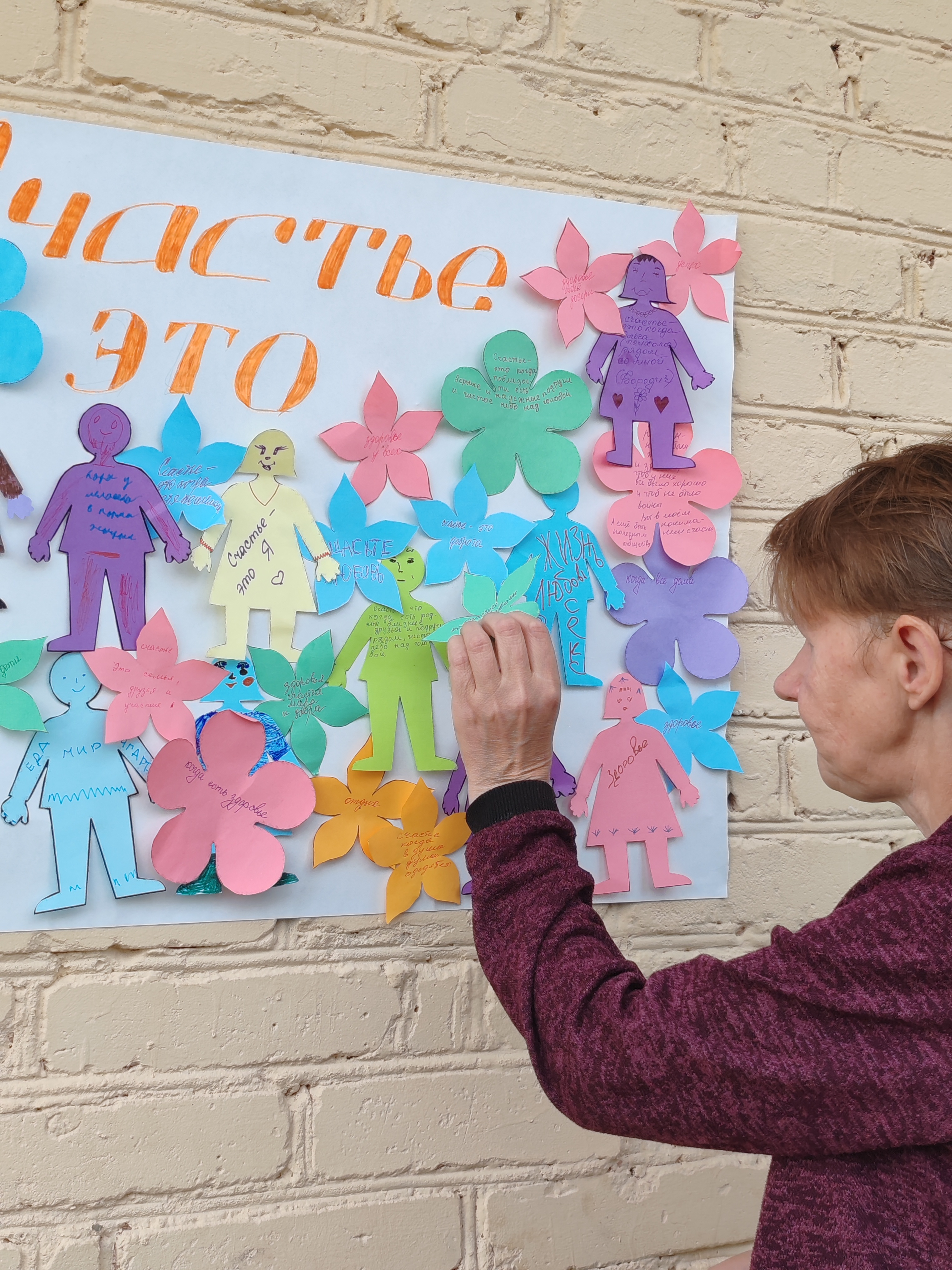 Проживающие описали, что для них счастье и создали коллективный плакат "Что такое счастье"